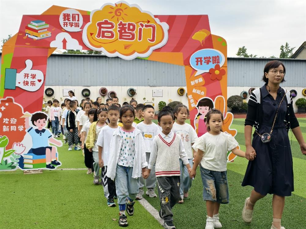 在热烈的掌声中,一年级新生在老师的引领下,迈着坚定的步伐走上“启智大道”。这条象征传承与报国的道路,见证了新同学们正式成为小学生的庄严时刻。学校礼仪队员为他们授予班牌,寓意着知识的火炬在此刻传递,希望的种子在此刻播种。