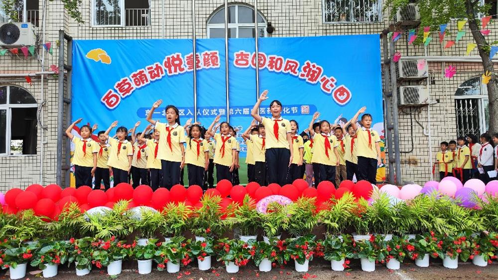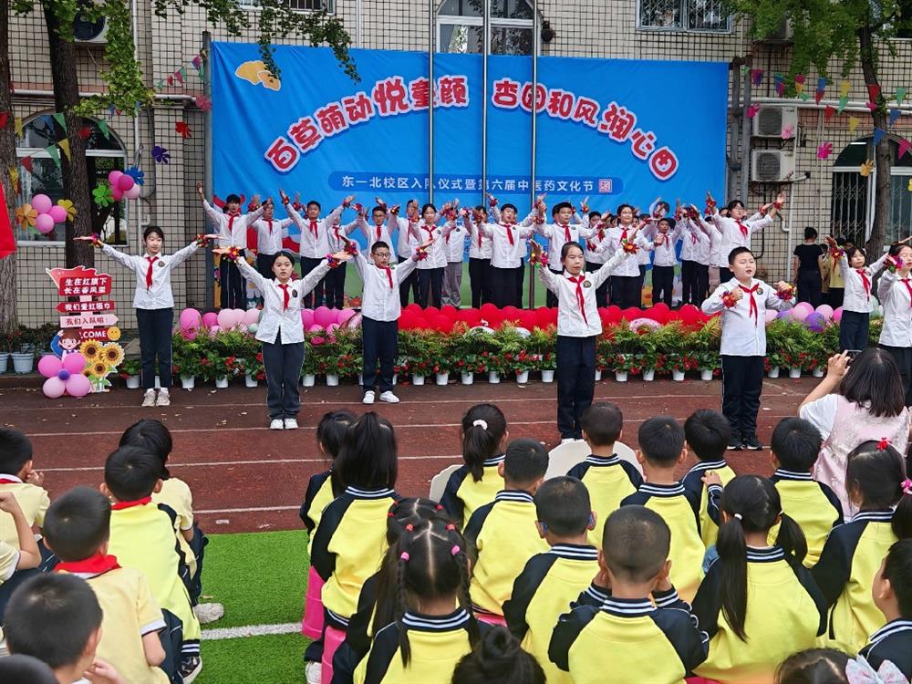2025年10月13日下午,东一北校区操场热闹非凡。“百草萌动悦童颜 杏园和风润心田”入队仪式暨第六届中医药文化节顺利举办。全校师生及嘉宾齐聚一堂,共赴这场融合红色传承与中医药文化的盛宴,既见证少年成长的庄严时刻,也开启传统文化探索之旅。