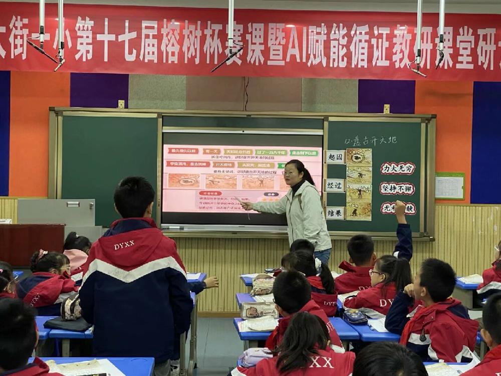 为促进青年教师快速成长、强化专业技能,推动教师交流学习,探索高效趣味教学模式以提升学生综合素养,近期,我校第十七届“榕树杯”赛课暨 AI 赋能循证教研活动在语文组火热开展。四年级语文组围绕大单元教学,以“探神话之奇,寻叙事之法”开启神话教学盛宴,老师们凭借独特设计与丰富活动,引领学生探秘神话世界,开启趣味学习之旅。