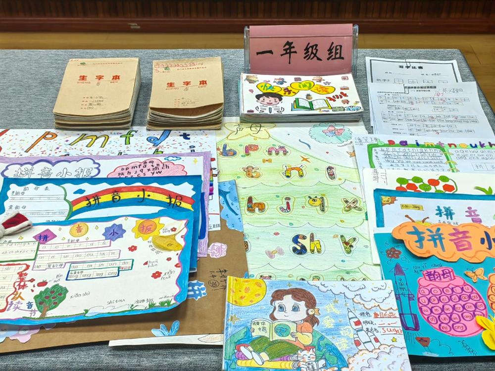 石紫玲老师代表一年级语文教研组进行分享。一年级语文组以“打好基础+激发兴趣”为核心目标,以“减量提质、寓教于乐”为理念,组内每日研讨,每周反思。一方面严格控制书面作业时长,确保学生在校完成巩固练习;另一方面结合生活情境与节日文化,推出系列趣味化、项目式的特色作业。在常规作业方面,注重规范书写与基础巩固,涵盖课堂书写(生字本、听写本)、朗读背诵(课文、拼音、古诗)及阶段练习(单元知识过关),教师全批全改、及时反馈,注重格式指导与错题订正。在特色作业方面,强调趣味性与实践性,包括节日文化(以照片或手抄报记录节日瞬间)、拼音小报(用生活物品拼出字母)、阅读记录册(每日阅读与生字积累)及拼音过关(声母、韵母、整体认读音节的认读写),旨在拓展能力,激发学生对语文的兴趣与热爱,全面提升识字、书写能力及综合语文素养。