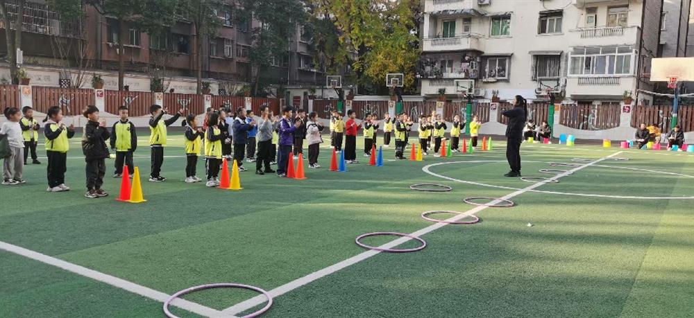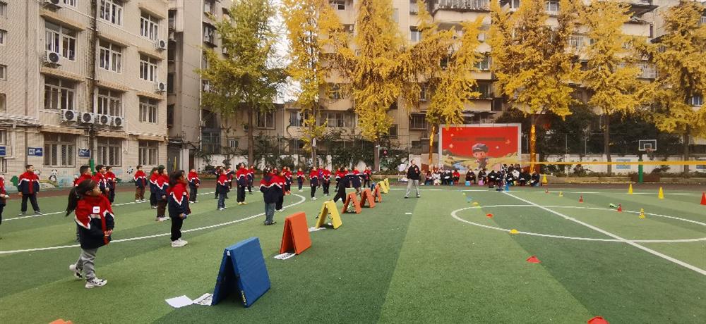 汪相州老师设计了一堂 “小小红军长征路” 主题障碍跑课。汪老师化身“指挥官”,用动画导入长征故事,设置了“突破封锁线”“飞夺泸定桥”等五大关卡。学生们在小组长带领下反复练习动作,在团队竞赛中默契接力,闯关成功后挥舞红旗欢呼。这堂课不仅锤炼了跑、爬、跳、钻等身体技能,更让团结协作、不畏艰难的长征精神深入人心,课后孩子们主动整理器材的细节,更是德育成效的鲜活体现。