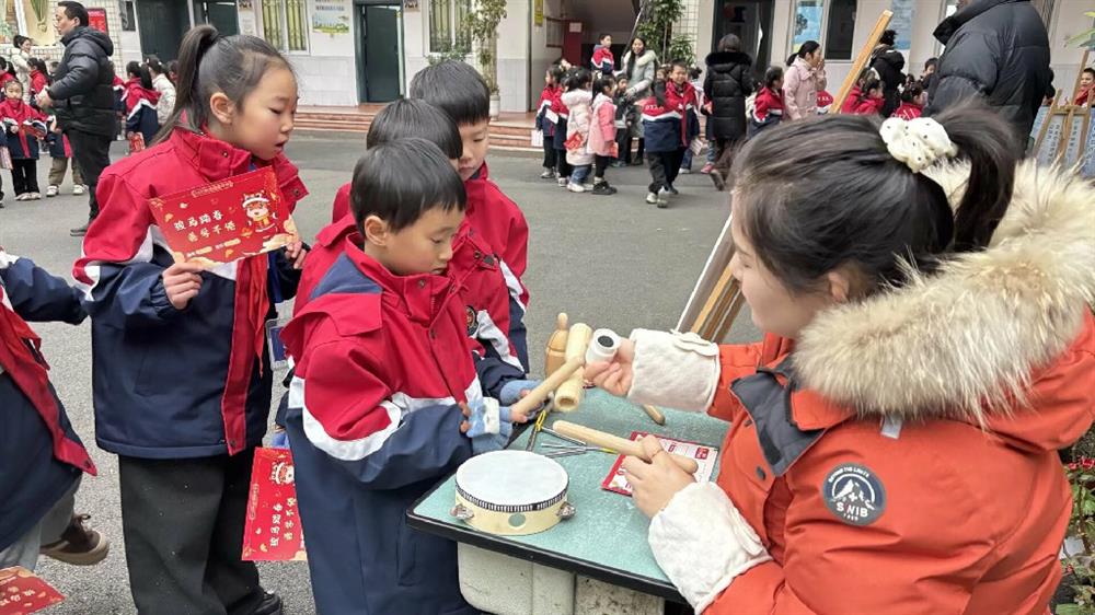 有的孩子用沙锤、响板复刻老师的节拍,有的孩子唱起欢快的歌曲,韵律感与表现力在这一刻尽情绽放。