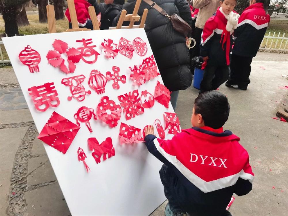 小剪刀在红纸上穿梭飞舞,孩子们跟着样例剪出吉祥的窗花,或是发挥想象创作独特图案,一张张剪纸承载着对新年的美好期许。
