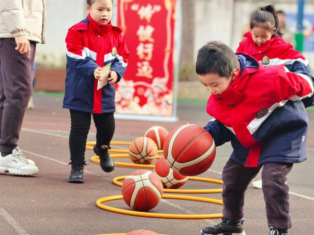 在“‘体’健行远”板块,设置“争分夺秒乐运球”运控技能展示与“绳采飞扬”计时跳绳两项挑战。运球项目中,学生们专注地操控篮球,展现出手眼协调、人球合一的技巧;跳绳环节则生动考验了他们的身体耐力与灵敏素质。整个活动井然有序而又气氛热烈,孩子们全情投入,在合作与鼓励中充分体验到运动带来的成就感与欢乐。