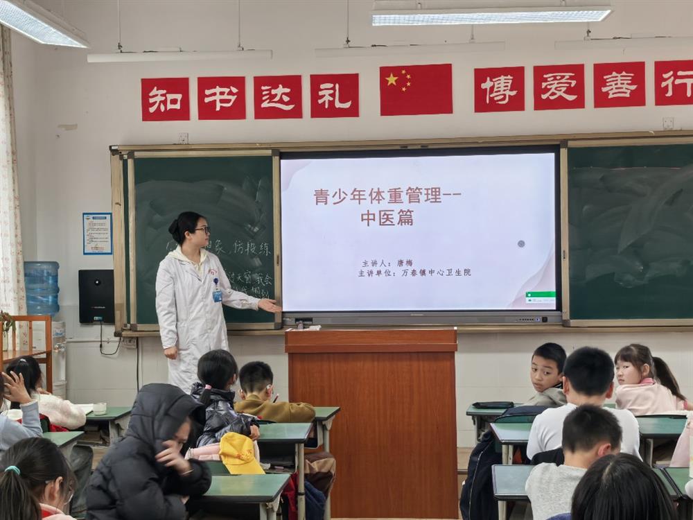 活动现场,卫生院的医师们结合小学生的认知特点,摒弃枯燥的理论讲解,采用“趣味讲解+案例分析+互动问答”的方式,将中医体重管理知识变得通俗易懂、可触可感。医师们以“青少年科学控重,健康快乐成长”为主题,结合中医“辨证施养”理念,生动讲解了青少年体重超标、体重过轻的危害,细致解读了饮食搭配、作息规律、适度运动与体重管理的关联,打破了孩子们对“体重管理”的片面认知,让大家明白科学控重不是盲目节食,而是通过合理调理,让身体保持健康状态。