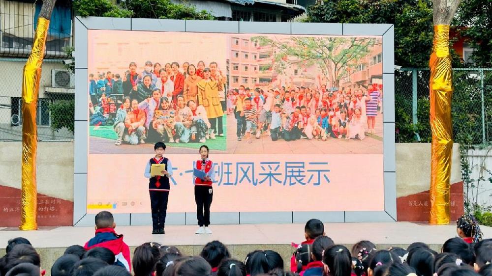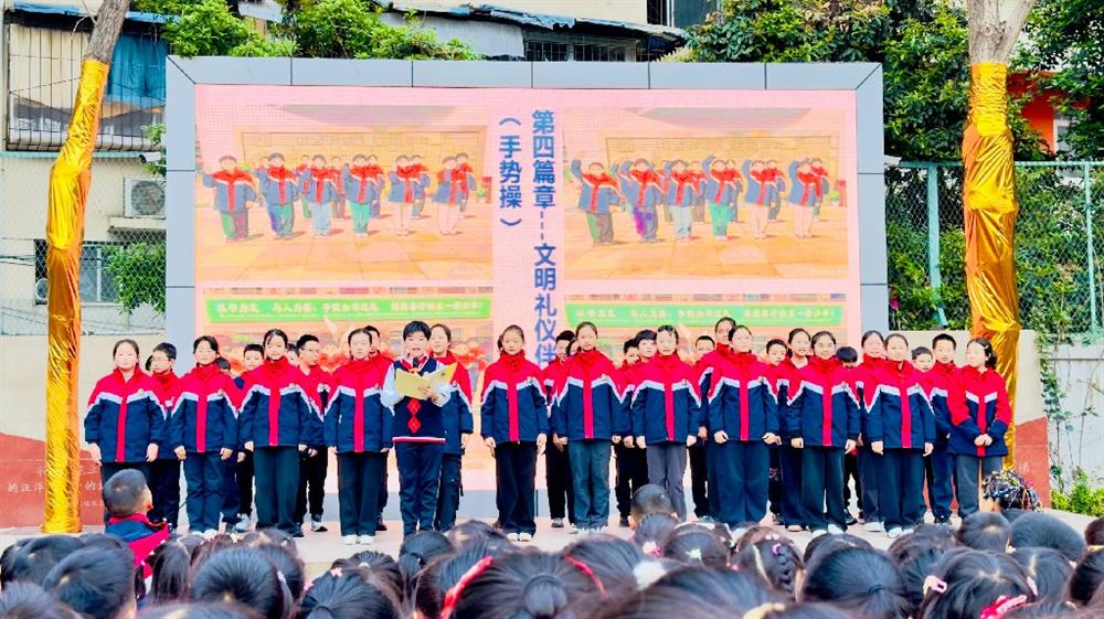 展演结束后,学生发展中心主任王曦作总结讲话。他充分肯定了六(7)班的精彩表现,并向全校师生发出文明“四礼”倡议,号召大家将文明礼仪融入日常: