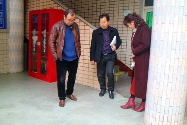 周科长在刘秀荣校长的陪同下,详细了解学校楼层设计图。并走进教室、办公室、功能室,对墙面、地面以及门窗年久老化问题进行分析,同时安排专业人员对学校排水系统、排污系统进行研判。