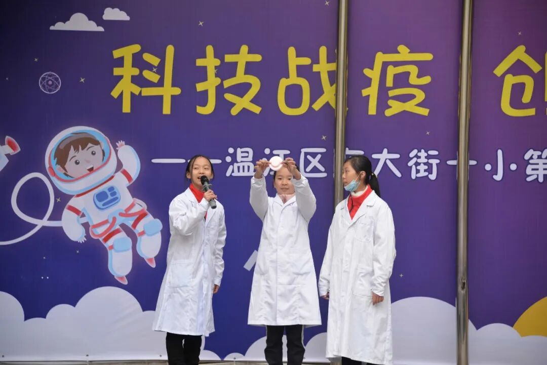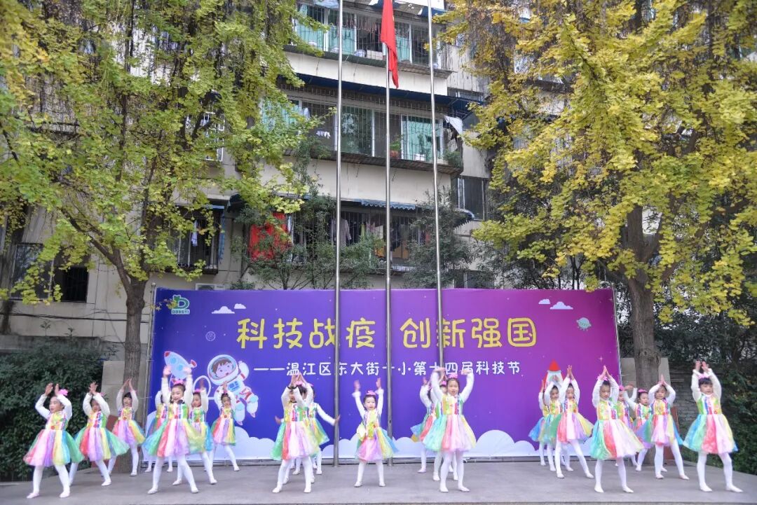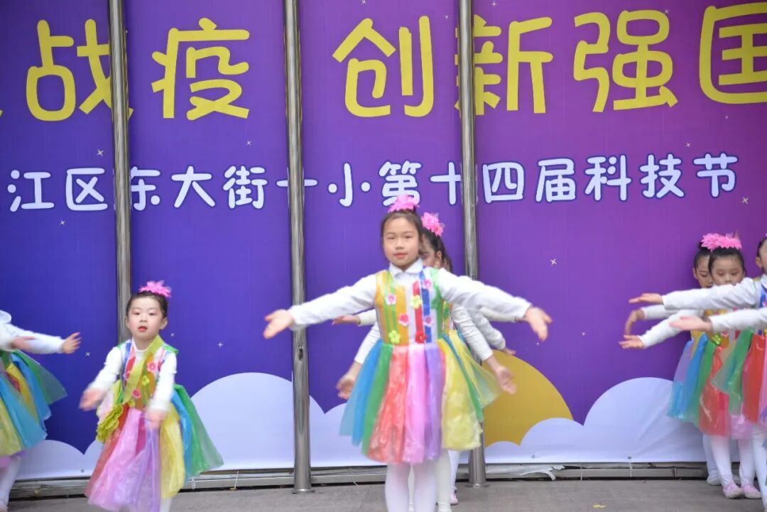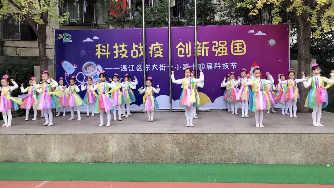 学科学、爱科学、用科学,学校舞蹈队的孩子们变废为宝,利用废旧塑料袋和报纸制作成优美的衣服,用动感的舞蹈《你笑起来真好看》向所有科技工作者,所有抗疫先锋致敬。