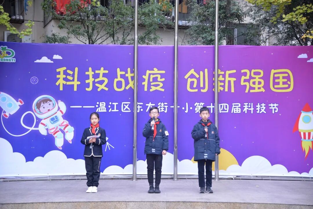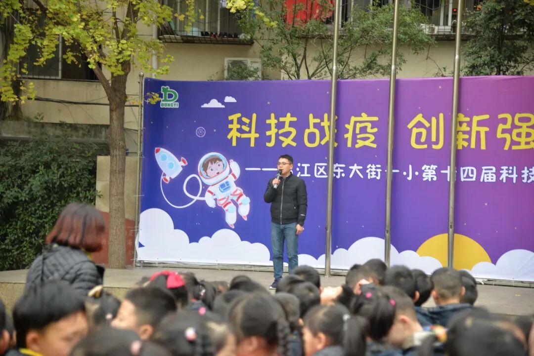 新时代的今天,人工智能,steam课程、乐高玩具,已经走进我们的学习,为我们生活添彩,为我们生活服务。东一的小科学家们在我们生活中也发现了许多科技的奥秘。舞台上,小小电力科学家们用形象生动的情景剧,简单明了的向同学们普及了电力知识,人类面对不同电压该怎样保护自己,怎么科学安全的用电。“力学科学家们”表演的“隔空喝水”“变色水”更是让台下的师生啧啧称奇,其实魔术表演里面也蕴含了许多科学知识,怎样了解魔术中奥秘吗?那就用自己那一双科学的眼睛去认识世界、发现世界,探索世界。