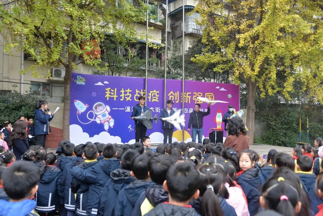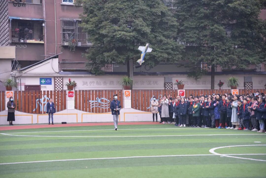 F3P特技机、纸飞机、歼11战斗机、自由者飞翼,由四川STEAM科创教育科普基地袁主任带领的成都师范学院航模队的哥哥姐姐们的航模飞行表演引爆了全场,刺激的失速类动作,急速的爬升、眼镜蛇机动、伴随着一道道优美的飞行轨迹,同学们的科技梦,已经完全被点燃。